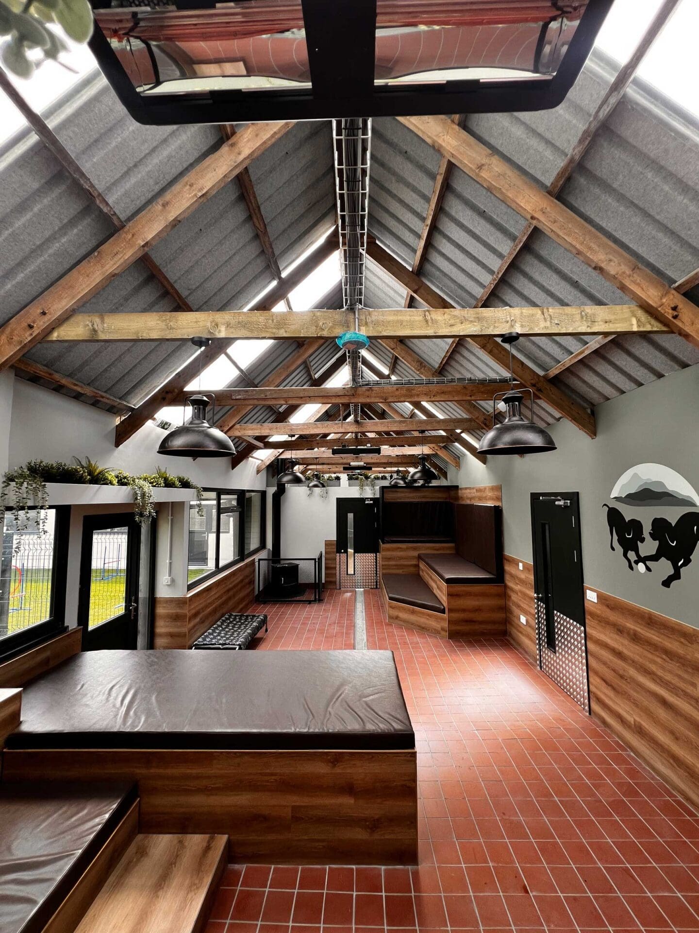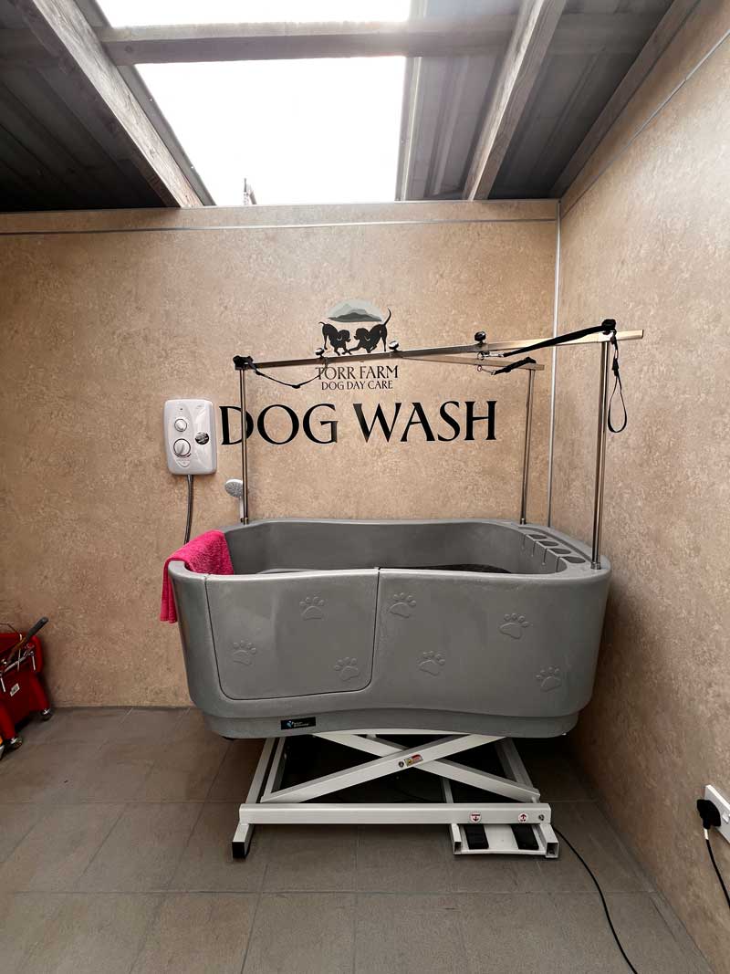 • “A homely, welcoming space with cosy bespoke dog sofas, a wood-burning stove, dedicated nap-time rooms, and plenty of indoor and outdoor play areas. We’ve even added a dog wash station—being on a farm, I know how important it is that your dog doesn’t come home muddy!”